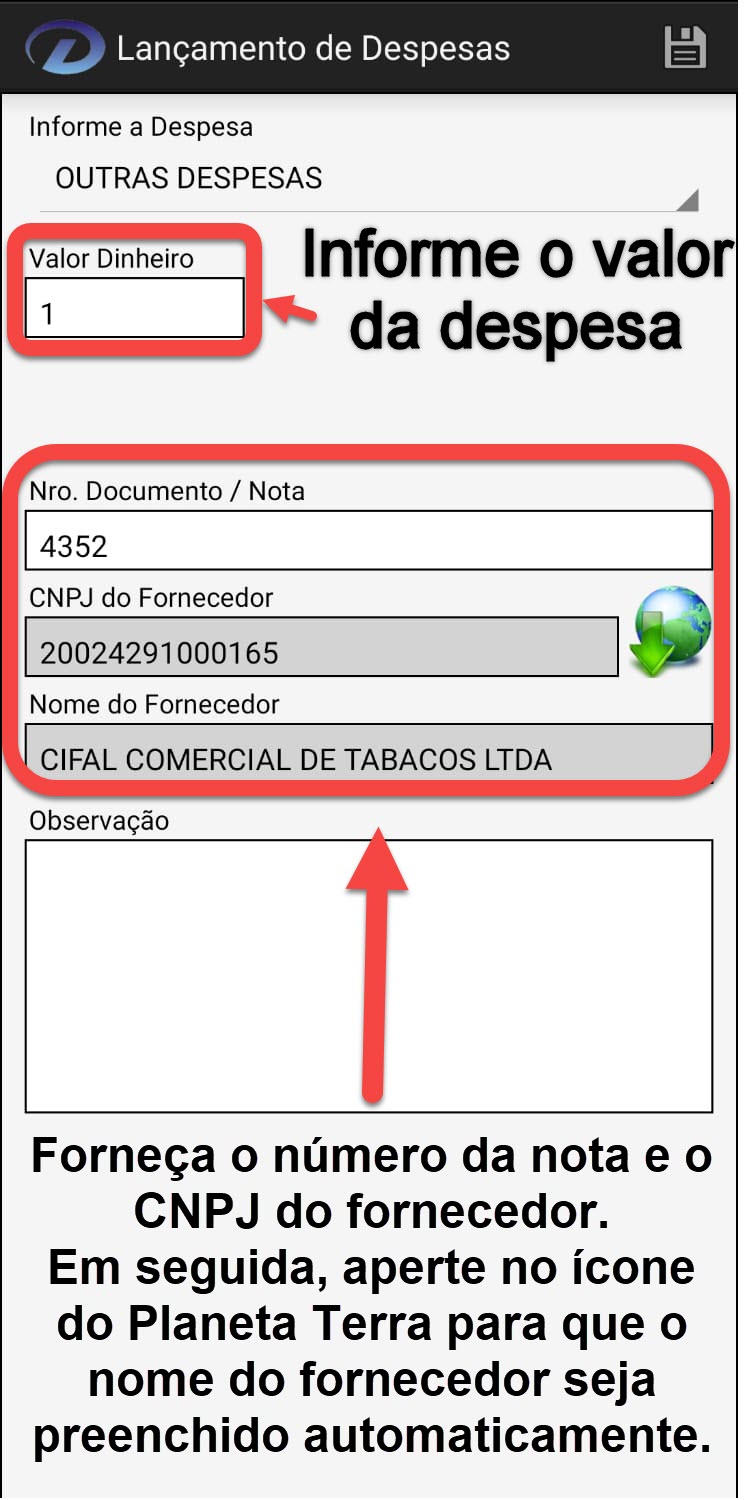 Em seguida, aperte no ícone do Planeta Terra para que o nome do fornecedor seja preenchido automaticamente.