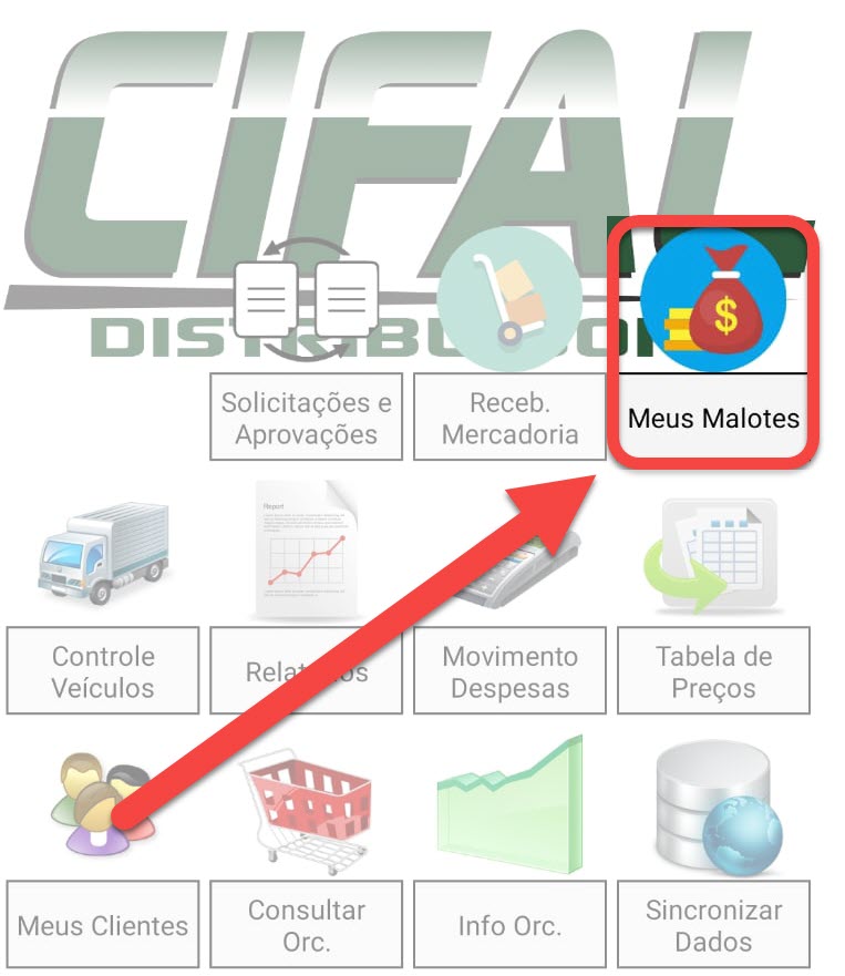 - Na tela inicial, localize e toque na opção "Meus Malotes". Isso abrirá a lista de malotes disponíveis.