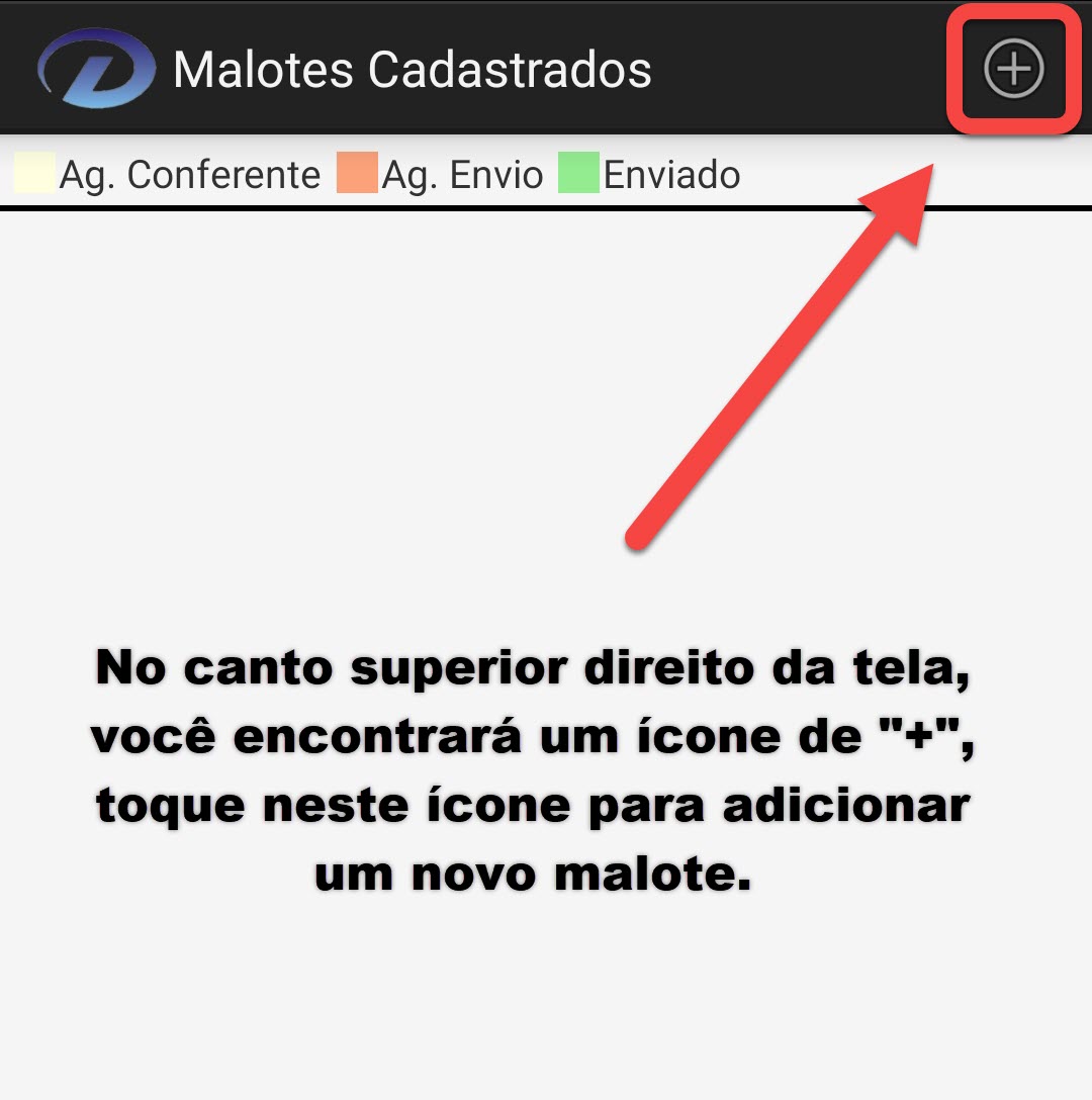 - No canto superior direito da tela, você encontrará um ícone de "+", toque neste ícone para adicionar um novo malote.