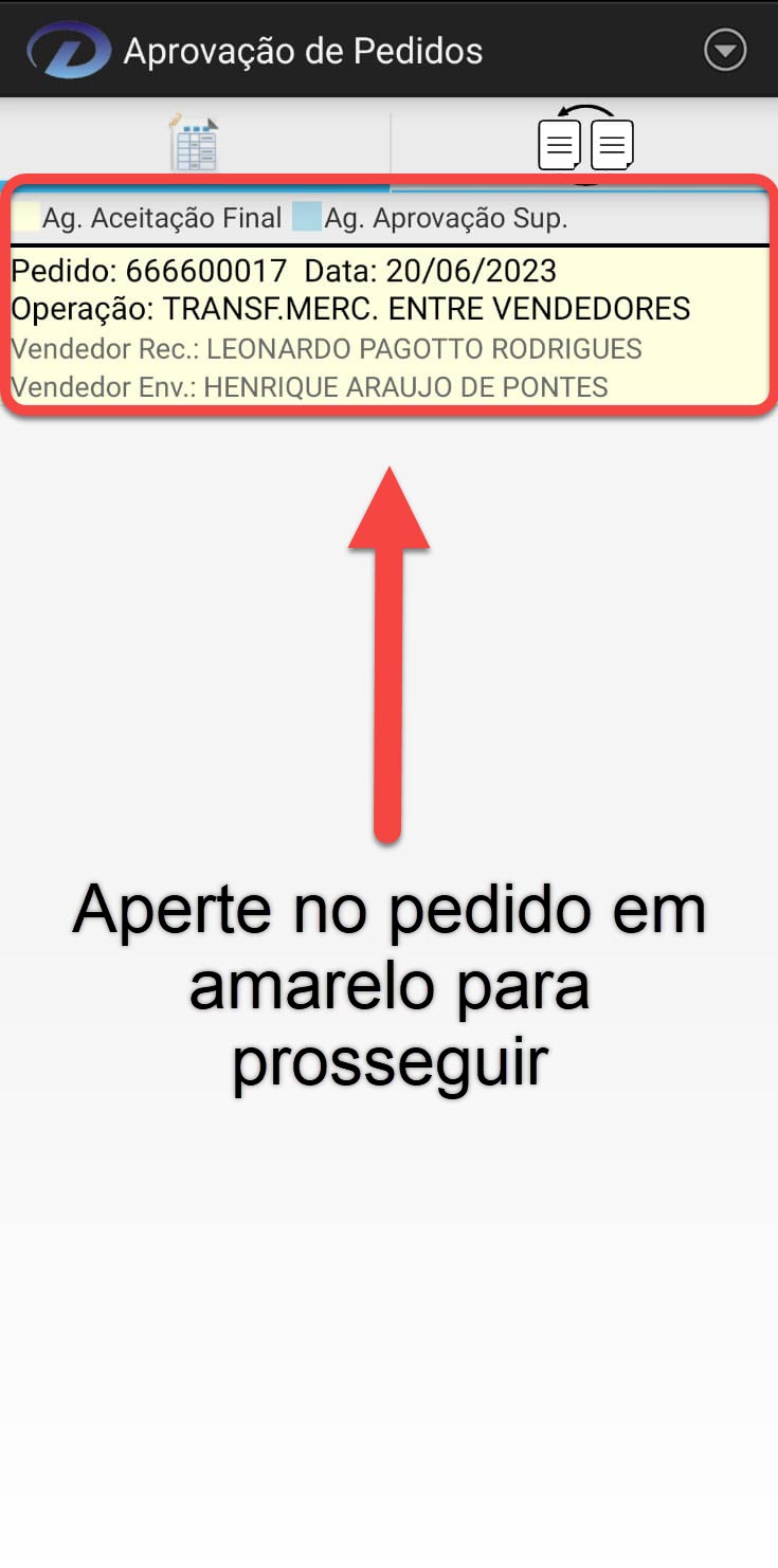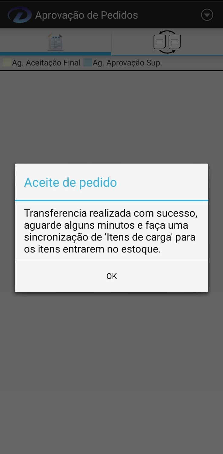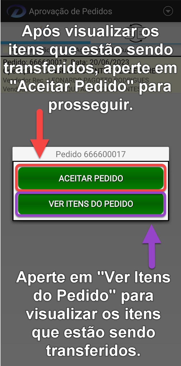 - Após visualizar os itens que estão sendo transferidos, aperte em "Aceitar Pedido" para prosseguir.