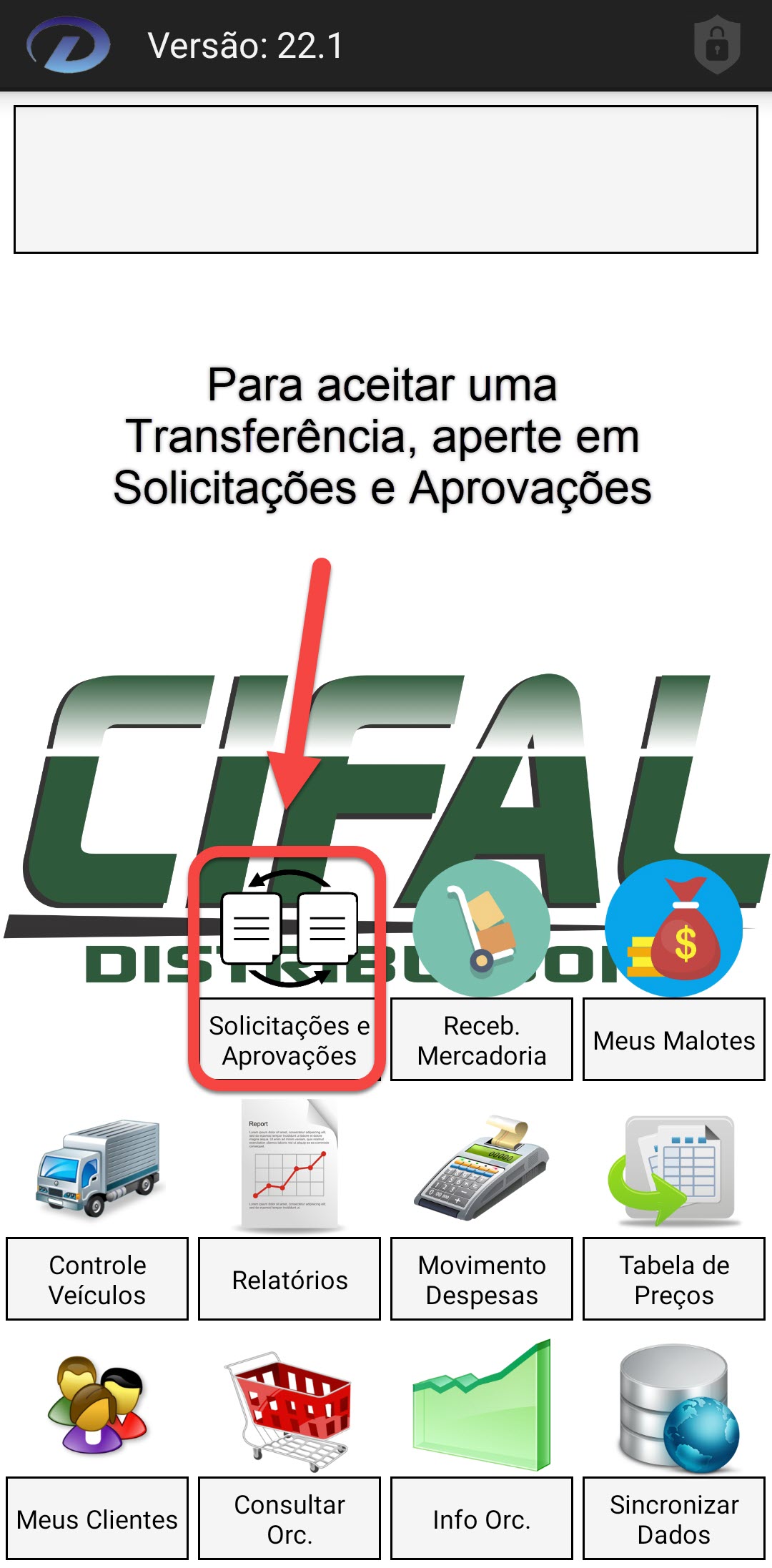 - Para aceitar uma Transferência, aperte em Solicitações e Aprovações
